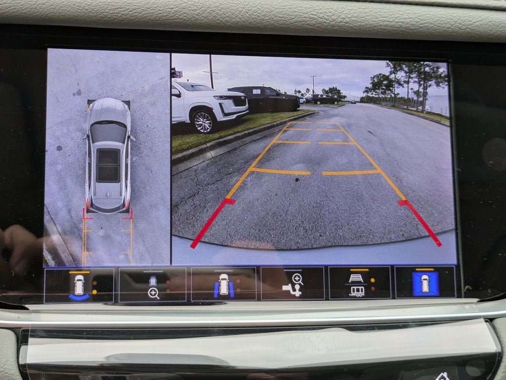 - Opens or closes when the system senses the key fob and the driver extends their foot under the left-hand side of the rear bumper over an image of the Cadillac Crest projected under the vehicle